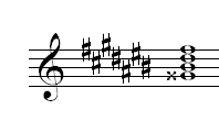 - Degré III : accord de C#M7#5 composé des notes C# - E# - Gx - B#